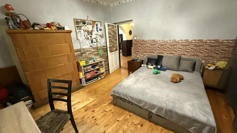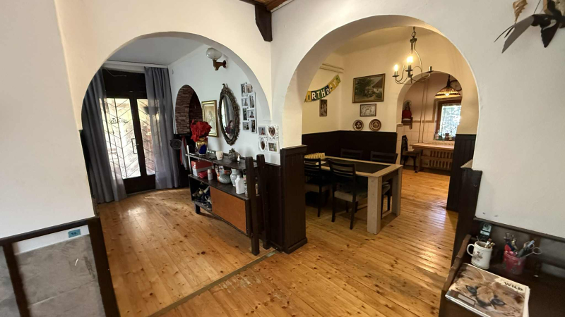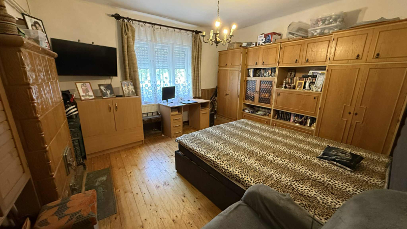 Kettő nagy,tágas szoba,világos ,kerte néző kis nappali,egy előtér,utóbbi kettő egy falbontással egybenyitható!!Étkező,konyha és spájz,valamint fürdőszoba található,az emeleten pedig egy 30 m2-es tetőtéri szoba található,régen műteremnek használták de ideális a gyerekeknek,vagy irodának is.