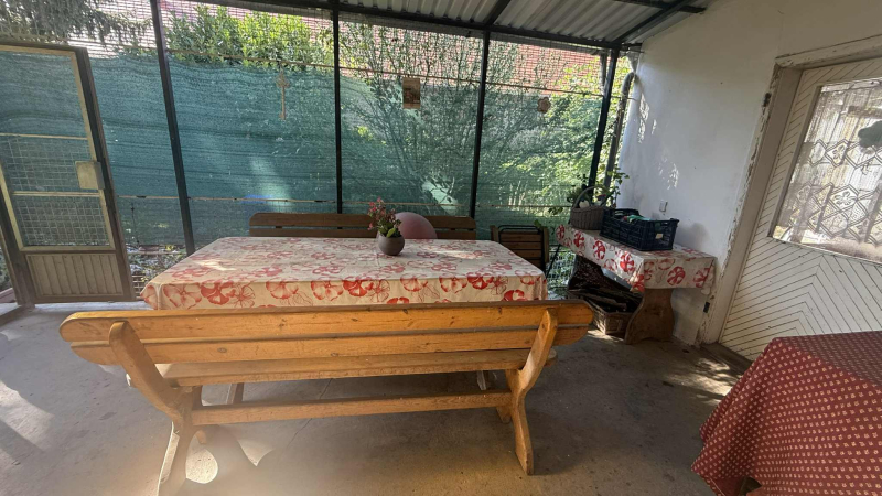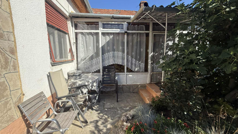 Fedett,kertre néző,zárt terasz,sőt még napozóterasz is található a ház hátsó részén!!!