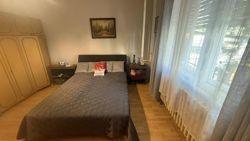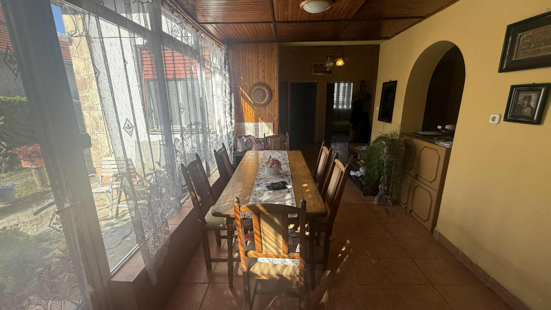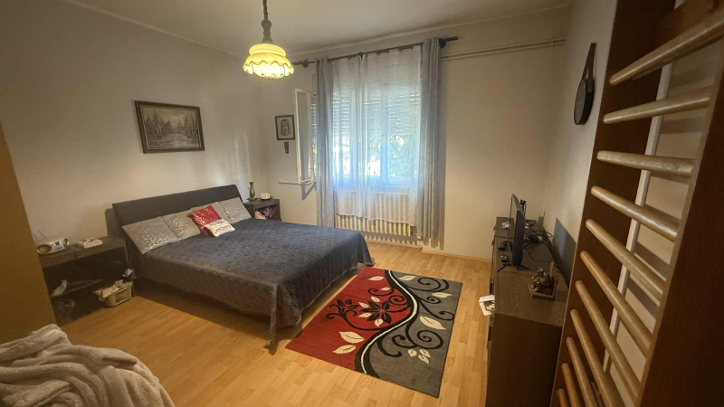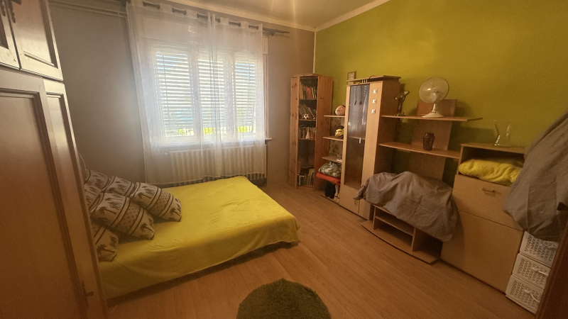 100 m2-en három tágas,világos hálószoba,majd 3 méteres belmagasággal,napfényes étkező,nappali hangulatos cserépkályhával,konyha és fürdőszoba található!