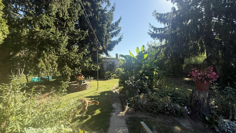 Az udvar rendezett,körbekerített,sok sok virággal,gyümölcsfával,kerti kúttal,de ezen kívül melléképület,garázs,műhely és istálló is van.