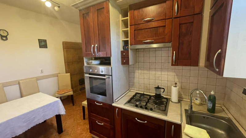 A különálló kis lakrészben konyha, szoba, fürdőszoba és WC került kialakításra.
