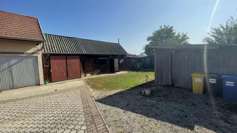 Az udvar rendezett,kettő garázs,fatároló,műhely is található a férfiak örömére:)