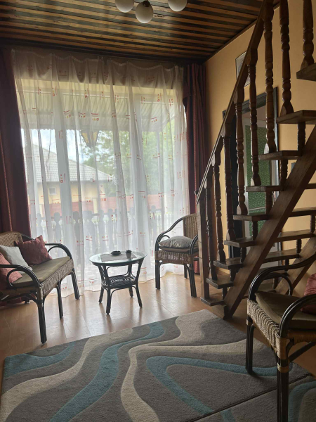A főépület 150 m2, melyhez kb. 25 m2 nagyságú pince, műhely, valamint egy 2004-ben épült mintegy 30 m2 alapterületű, külön bejáratú udvari lakrész is tartozik..Kiváló vendégeknek,nagyinak:)