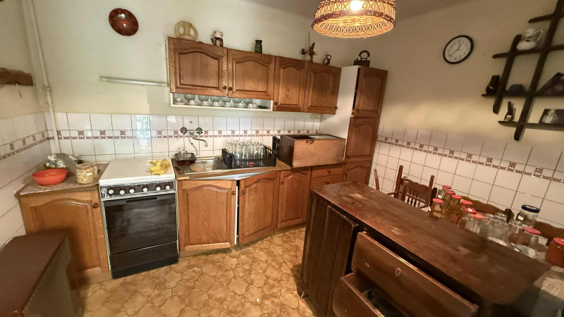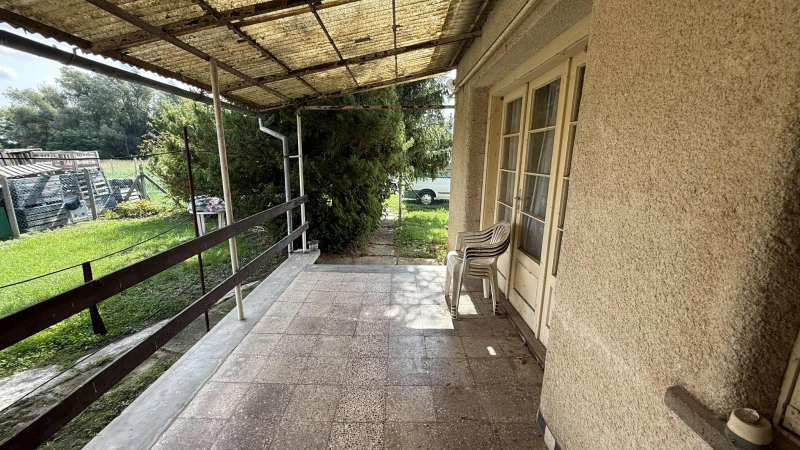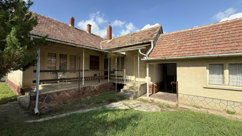 Helységei: 4 tágas,világos szoba,fürdőszoba,konyha és spájz.Nagy,kertre néző fedett terasz,az udvaron garázs,tároló,melléképület,valamint nyári konyha és műhely,hogy mindennek meglegyen a helye.