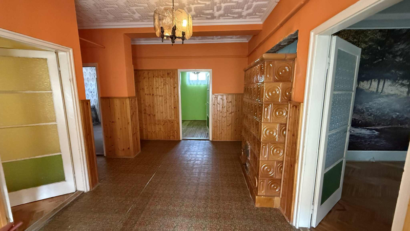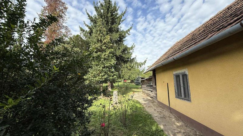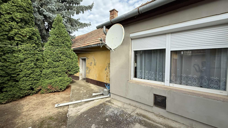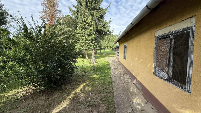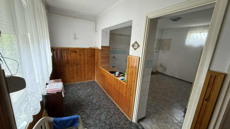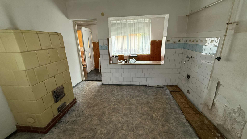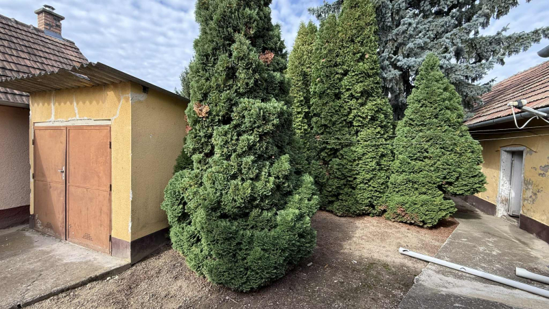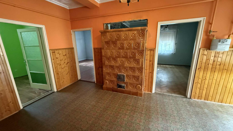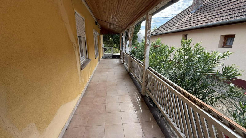 A ház felújítást igényel,jelenleg négy szoba,nappali,folyosó,fürdőszoba,konyha,található,25 m2-es fedett terasszal és garázzsal,igény szerint alakítható,felújítható.