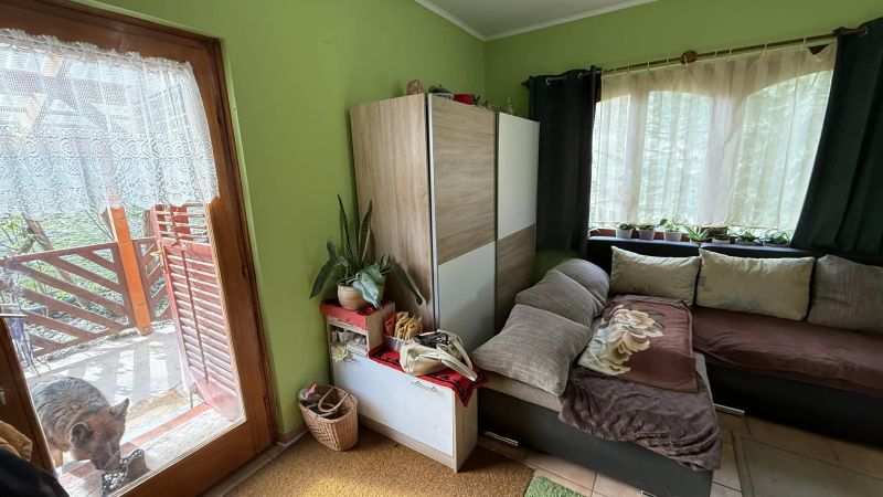 Ezen kívül egy hálószoba,konyha és fürdő található,valamint egy déli fekvésű,kertre néző,fedett terasz is,ahol garantáltan elfér egy nagyobb család is.