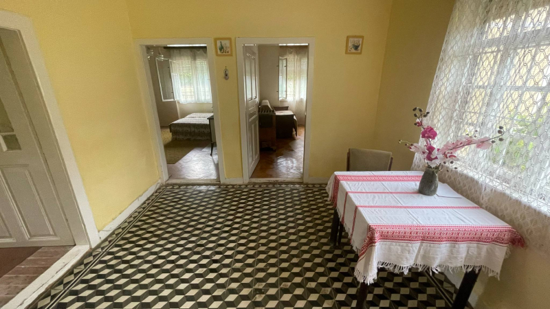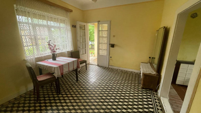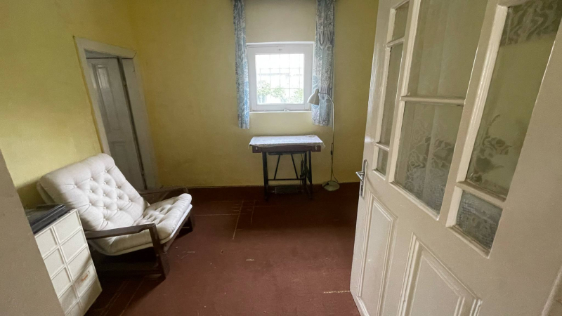 Das Häuschen benötigt Renovierung,es ist circa 90 m2 gross und besteht derzeit aus drei Zimmern, Flur, Badezimmer und Speisekammer.
