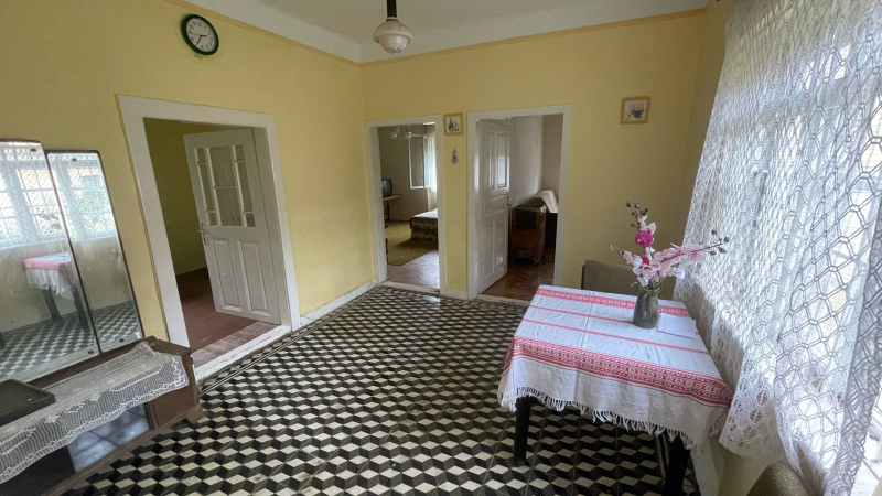 A házikó felújítást igényel,jelenleg három szoba,előtér,fürdőszoba és spájz található,fűtés fával megoldott,gáz a ház előtt található.