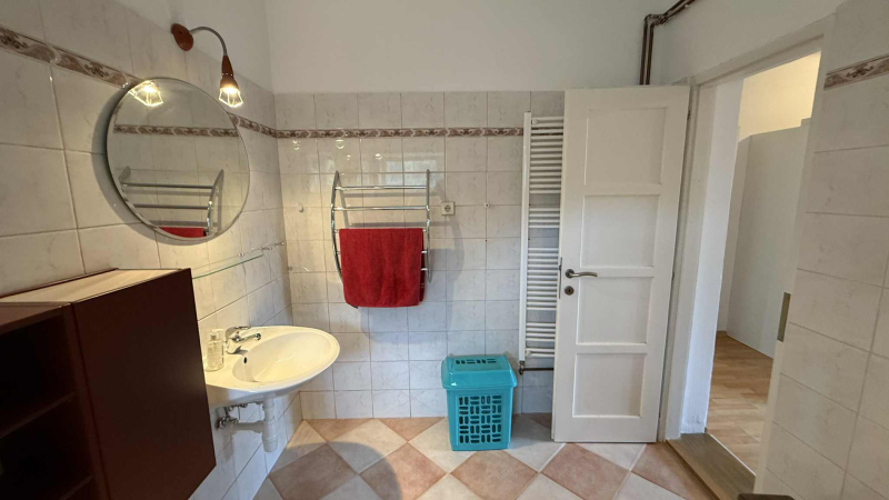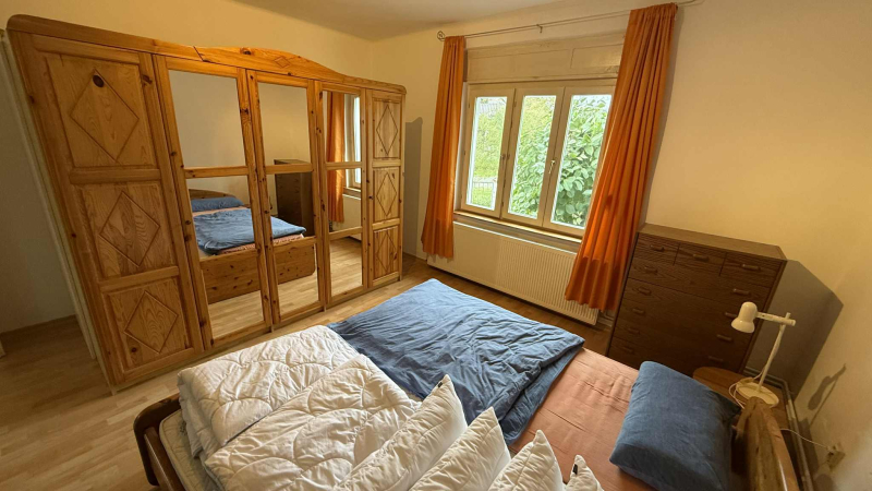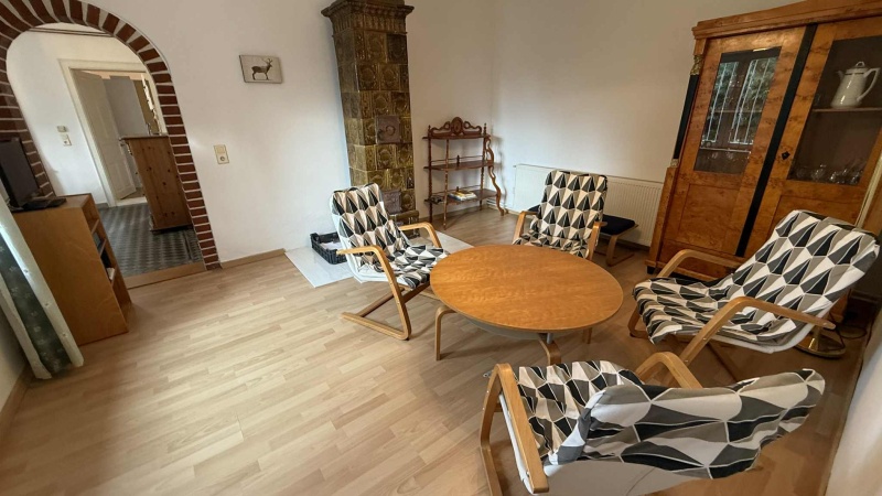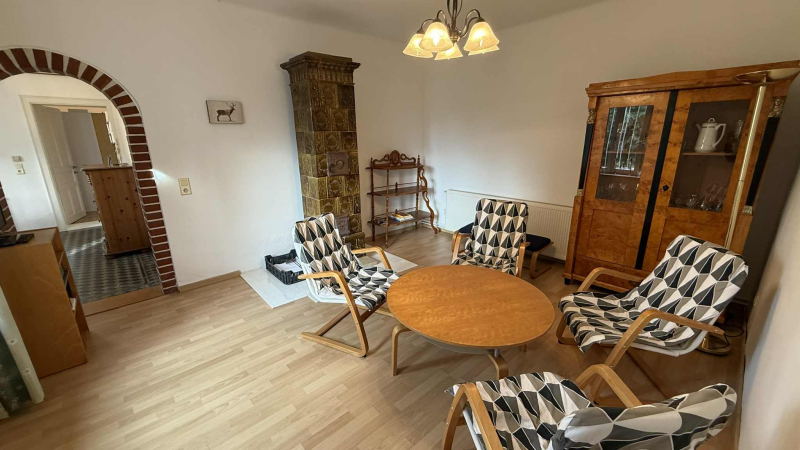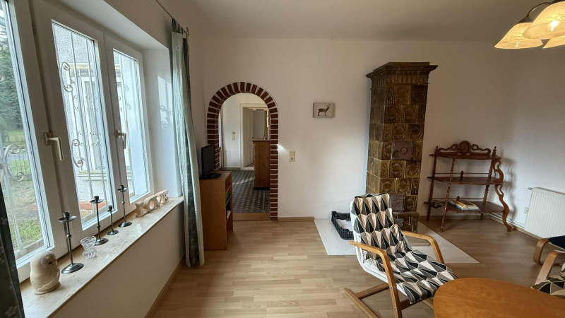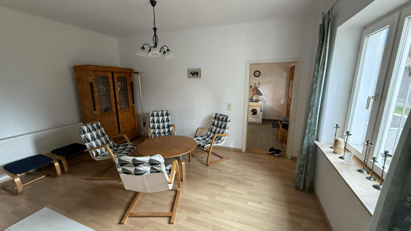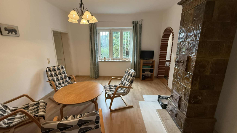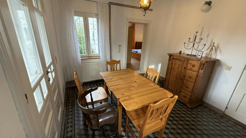 geräumiges Wohnzimmer mit wunderschönem Kachelofen, Essbereich, Gästetoilette, großes, helles Schlafzimmer mit eigenem Bad sowie Gästezimmer mit Badezimmer und separatem Eingang!