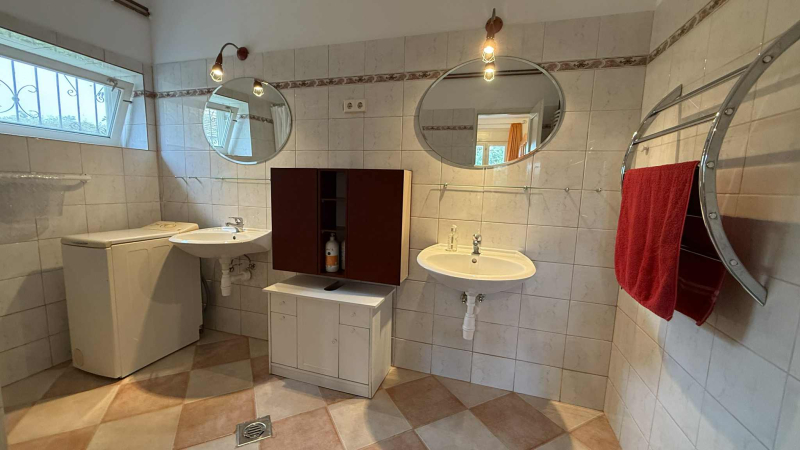 tágas nappali gyönyörű cserépkályhával,étkező,vendég wc,nagy,tágas,világos hálószoba saját fürdőszobával valamint vendégszoba fütdőszobával és külön bejárattal!!!