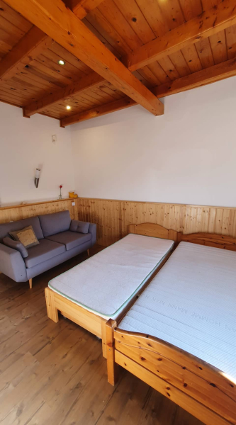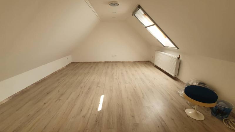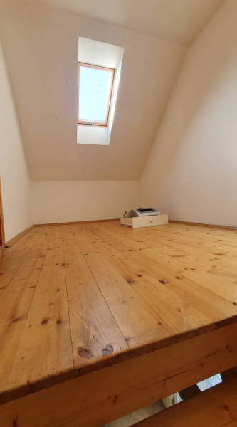 Zwei Schlafzimmer im Erdgeschoss, ein großes Schlafzimmer im Dachgeschoss, der Rest des Dachgeschosses kann bei Bedarf ausgebaut werden.