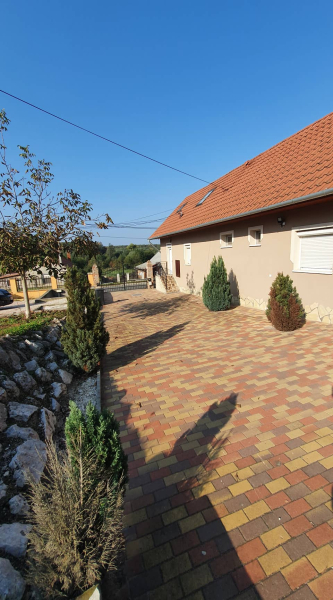 Az udvar hatalmas,térkövezett,elektromos kapubejáróval,lakóautónak is alkalmas garázs is található!