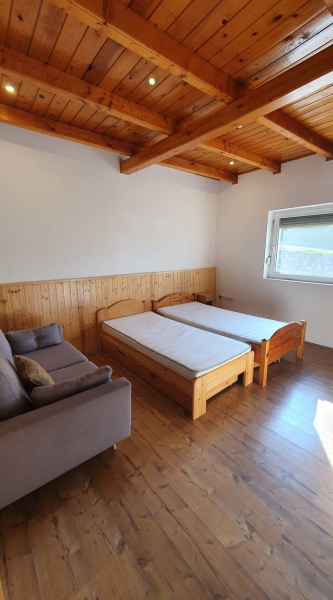 Kettő hálószoba a földszinten,egy nagy hálószoba a tetőtérben,igény szerint a tetőtér további része is beépíthető.