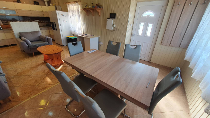 Fußbodenheizung mit Holzkessel (Gas und kanalisation gibt es in der Siedlung nicht), 2008 komplett renoviert, neues Dach, Außendämmung, wärmegedämmte Holztüren und -fenster, dreiphasig, hochwertige Beläge, elektrische Rollläden, schöne rustikale Decke überall!