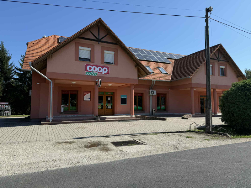 A földszinten egy jól bejáratott élelmiszerbolt és egy dohánybolt található gazdasági és raktárhelyiségekkel.ami havi 500.000 forintos bevételt hoz!