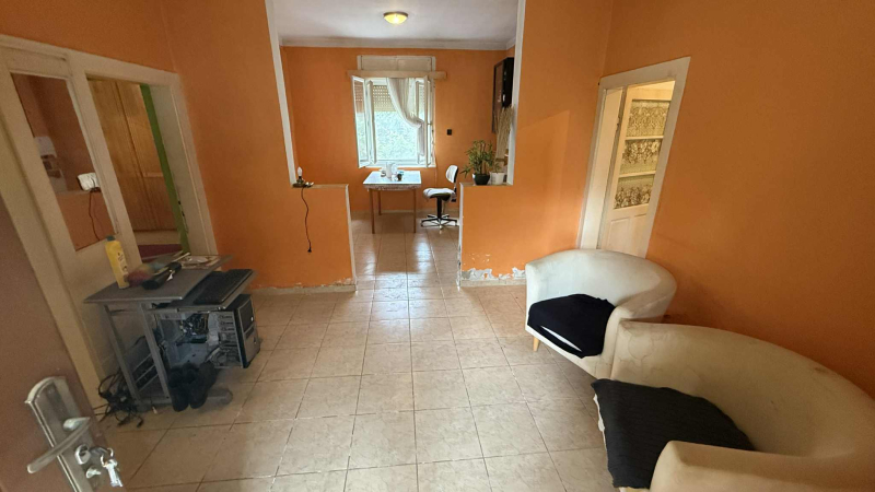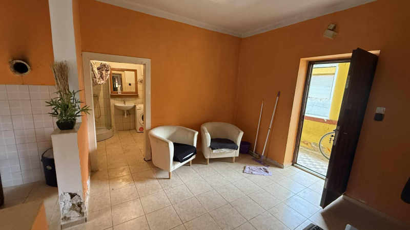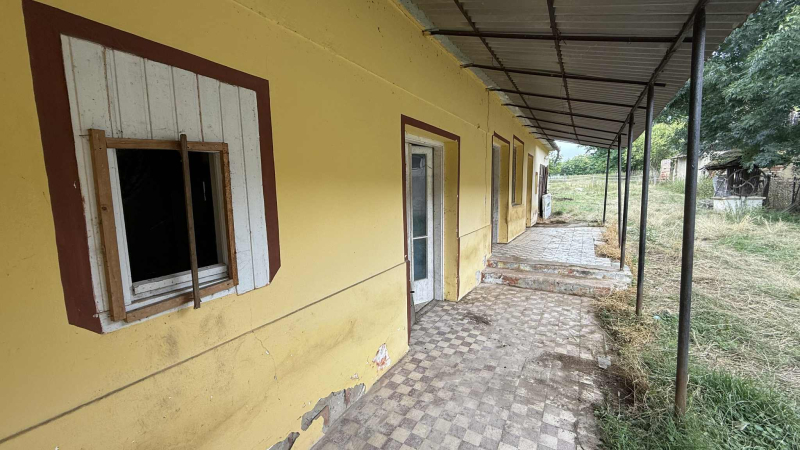 Das Haus wurde in den 1970er Jahren erbaut und besteht aus Ziegeln, Holzofenheizung, zwei Zimmern, Wohnzimmer, Bad, WC, Nebengebäuden und Garage.