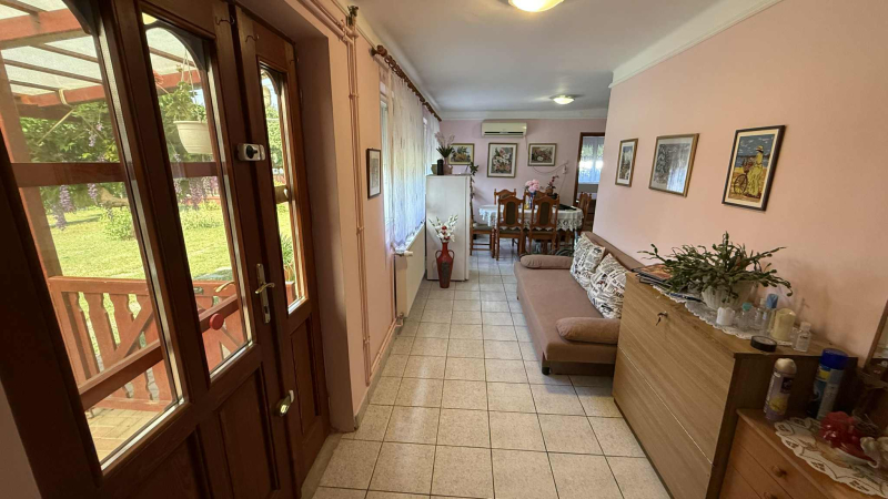 Die Immobilie hat drei Zimmer, eine gut gestaltete, großzügige und helle Essecke sowie Küche.Ein Teil ist aus Mischmaterial gebaut, der größere Teil wurde später hinzugefügt.