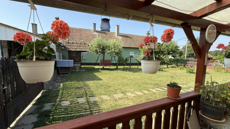 Kertre néző,fedett terasz,gondozott udvar,sok sok melléképülettel,kettő garázzsal,gyümölcsfákkal és nyugalommal!!