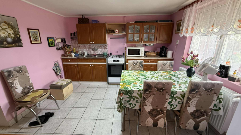 Az ingatlan három szobás,jó kialakítású,tágas,világos étkezővel és konyhával.